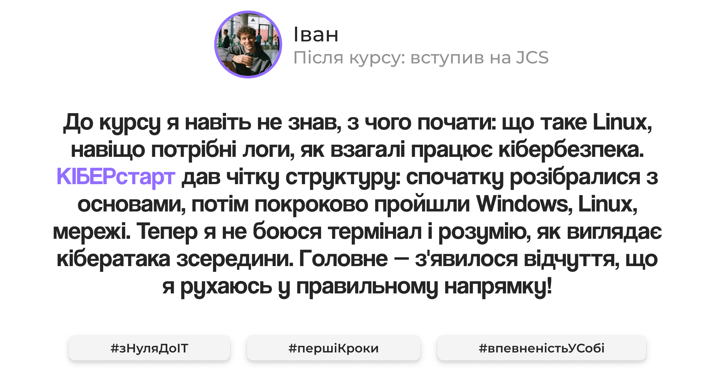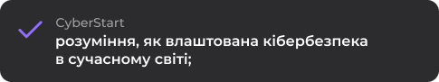 КІБЕРстарт — це курс для тих, хто хоче без перевантаження зайти в кібербезпеку, зрозуміти фундамент професії та зробити перший усвідомлений крок у сферу, яка стрімко зростає.