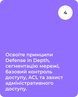 • Принцип Defense in Depth • Сегментація мережі • Контроль доступу: хто, куди і навіщо • ACL як базовий інструмент блокування атак • Захист адміністративного доступу: SSH як стандарт