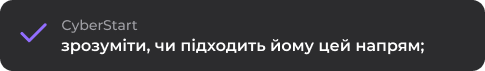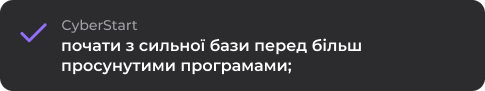 Залиште заявку, щоб отримати консультацію, дізнатися деталі програми та зрозуміти, як курс КІБЕРстарт допоможе вам зайти в одну з на
