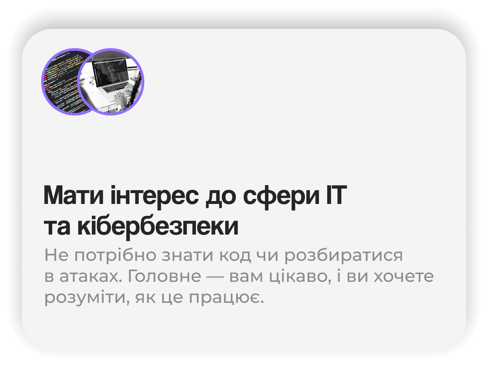Курс створений для новачків, які хочуть зрозуміти основи кібербезпеки, отримати системну базу та впевнено почати розвиток у цьому напрямку.